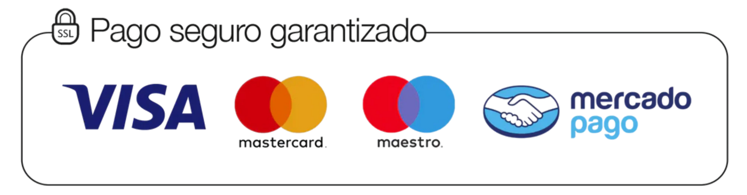 Podés pagar con tarjeta de crédito, débito y Mercado Pago. Todo el proceso es seguro y en moneda local (CLP).